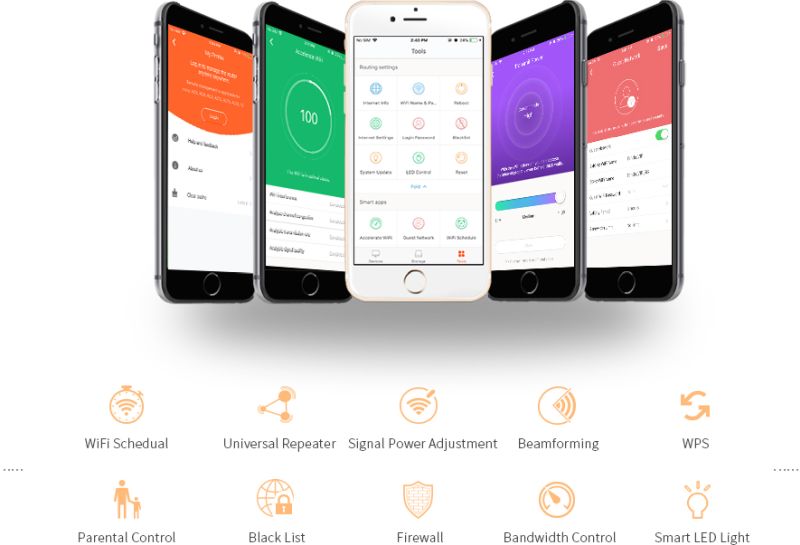 Aplikacja Tenda WiFi (iOS, Android) umożliwia zarządzanie ustawieniami routera i konfigurację naszej sieci lokalnej z poziomu telefonu komórkowego, z dowolnego miejsca na świecie. Pozwala też na zmianę ustawień sieciowych dla poszczególnych użytkowników korzystających z sieci, np. włączenie kontroli rodzicielskiej, ograniczającej dostęp do wybranych stron internetowych.