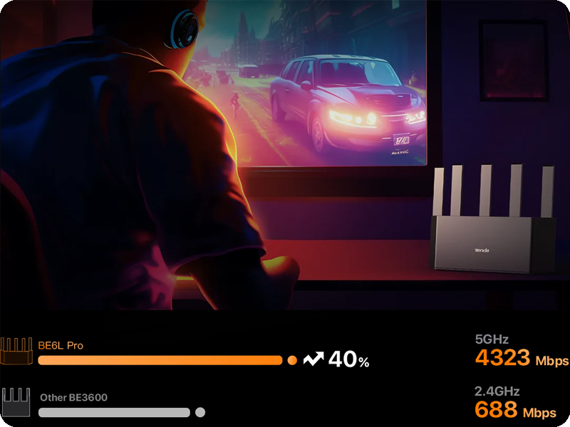 Pięć anten o wysokim zysku zapewnia silniejszy sygnał Wi-Fi i szerszy zasięg, eliminując martwe strefy w domu. Dzięki temu, niezależnie od miejsca, w którym się znajdujesz, możesz liczyć na stabilne połączenie. Router został zaprojektowany z myślą o zapewnieniu niezawodnego sygnału w całym domu, nawet w miejscach o trudnym dostępie. TE6L Pro to idealne rozwiązanie dla dużych mieszkań i domów jednorodzinnych.