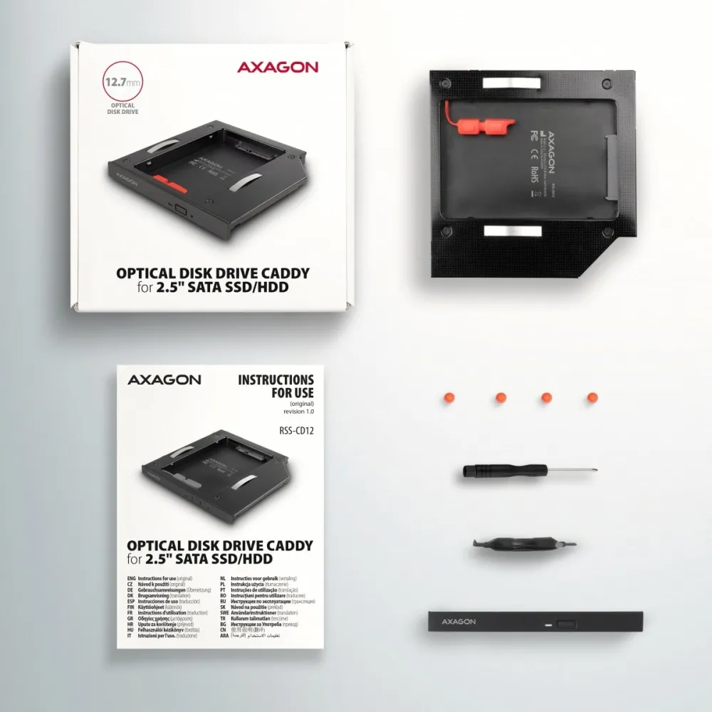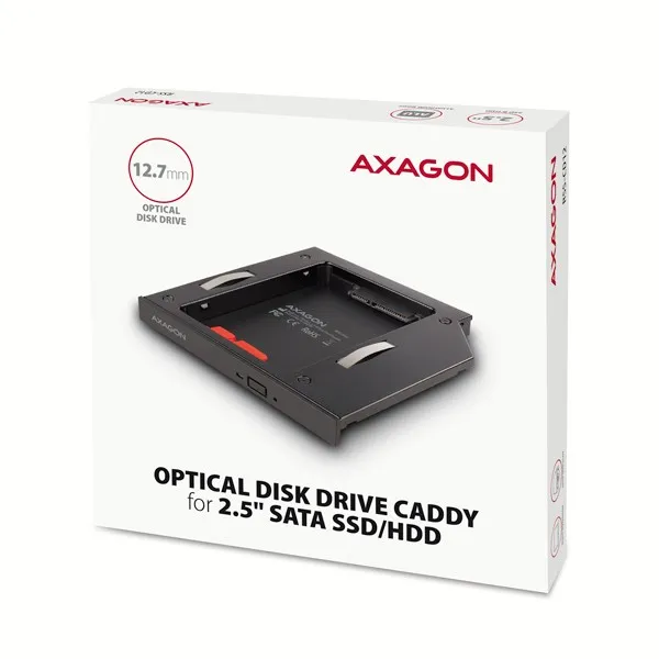 Rama wewnętrzna AXAGON RSS-CD12 przeznaczona jest do montażu w miejsce napędu CD/DVD 12.7 mm. Przeznaczona jest do dysków 2.5" SSD/HDD SATA. Z łatwością zamienisz napęd optyczny w laptopie dyskiem twardym.