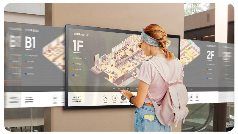 Seria QMR-T oferuje jeszcze lepszą widoczność dzięki antyodblaskowej szklanej powierzchni wyświetlacza, która usuwa refleksy rozpraszające uwagę, a matowa powłoka na szkle gwarantuje pełen komfort podczas korzystania z ekranu dotykowego. Co więcej Seria QMR-T firmy Samsung zapewnia rozdzielczość FHD, która zapewnia niezwykłą wyrazistość treści i zwiększa zaangażowanie odbiorców poprzez prezentację realistycznie wyglądających obrazów.