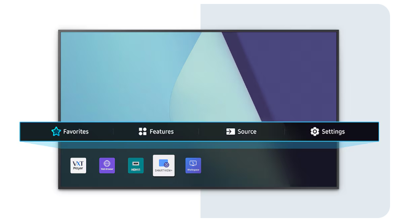 Wyświetlacze Samsung QMC to nie tylko doskonała jakość obrazu, ale także maksymalna wygoda użytkowania. Dzięki ulepszonemu interfejsowi ekranu głównego wszystkie kluczowe funkcje są teraz jeszcze łatwiej dostępne. Najczęściej używane kategorie, takie jak Ulubione, Źródła i Ustawienia, znajdują się w jednym miejscu, zapewniając szybki dostęp do najważniejszych opcji. Dodatkowo, folder Ulubione umożliwia błyskawiczne przełączanie się między najczęściej używanymi funkcjami – wszystko za pomocą jednego kliknięcia. Wybierz QMC i ciesz się intuicyjną obsługą, która pozwala skupić się na tym, co najważniejsze – efektywnej komunikacji wizualnej.