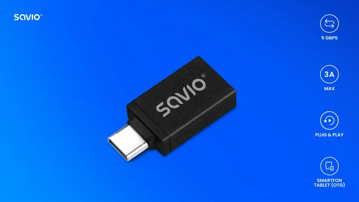 Adapter USB-A 3.1 i USB-C 3.1, Savio AK-80 to niezawodne rozwiązanie do połączenia urządzeń z portami USB-A 3.1 i USB-C 3.1, które oferuje szybki transfer danych i możliwość ładowania urządzeń.
