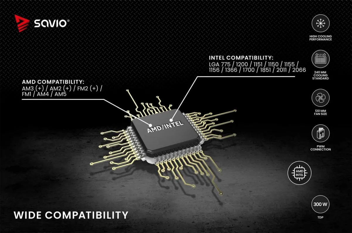 Chłodzenie wodne NOX 360 mm jest kompatybilne z szeroką gamą podstawek procesorów zarówno od Intela, jak i AMD.