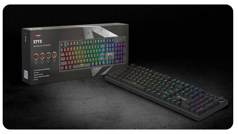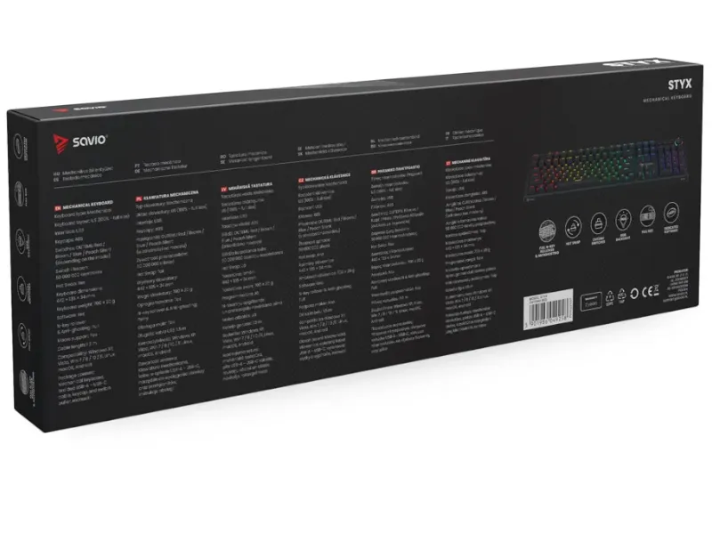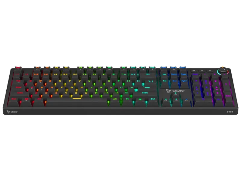 Savio STYX to klawiatura mechaniczna typu full size (pełnowymiarowa), stworzona z myślą o graczach i profesjonalistach, którzy nie uznają kompromisów. Łączy w sobie wygodę codziennego użytkowania z gamingową wydajnością i efektownym designem. Dzięki możliwości personalizacji, wysokiej trwałości i nowoczesnym funkcjom, STYX doskonale sprawdza się zarówno w rozgrywce, jak i pracy.