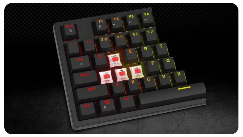STYX oferuje funkcję Hot Swap (czyli możliwość samodzielnej wymiany przełączników bez potrzeby lutowania). W kilka chwil możesz zmienić przełączniki na inne, dopasowując działanie klawiatury do swoich potrzeb – bez specjalistycznych narzędzi. To idealne rozwiązanie dla osób, które chcą eksperymentować z różnymi typami przełączników lub łatwo wymieniać zużyte elementy.