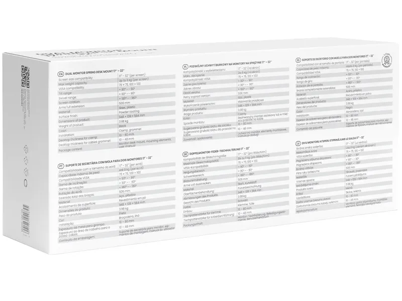 Każde z ramion uchwytu oferuje imponujący zakres ruchu: pochylenie od +90° do –90°, obrót w poziomie od +90° do –90°, a także rotację ekranu od +180° do –180°. Dzięki zasięgowi ramion aż do 506 mm łatwo dopasujesz układ monitorów do szerokości biurka. Tak szeroka możliwość regulacji pozwala stworzyć w pełni ergonomiczne stanowisko pracy dopasowane do Twoich preferencji. To idealne rozwiązanie dla osób spędzających długie godziny przed ekranem.