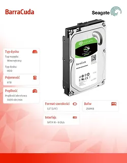 Komputery i podzespołyPodzespołyDyski twardeDyski wewnętrzne HDDSeagate BarraCuda 6TB 3,5'' 256MB ST6000DM003