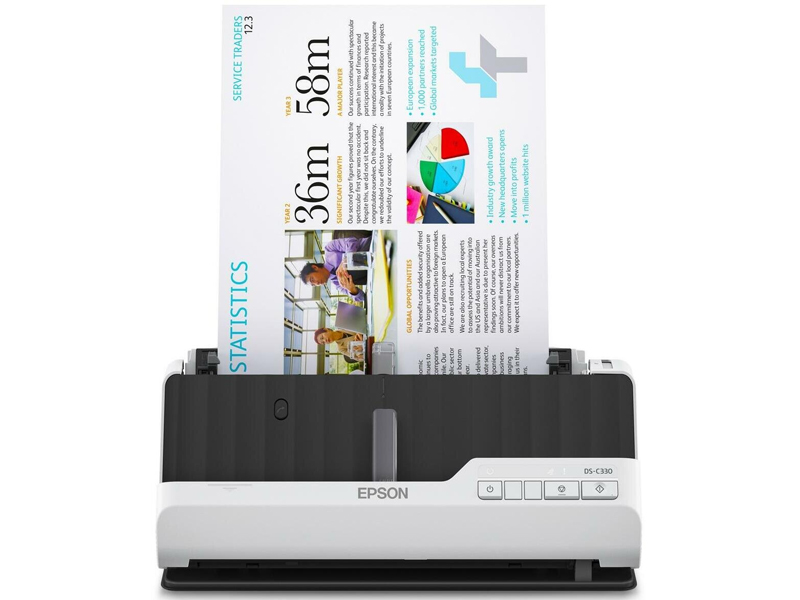 Epson DS-C330 to skaner stworzony z myślą o średnich biurach, w których liczy się tempo i niezawodność. Dzięki prędkości skanowania do 30 stron na minutę zarówno w kolorze, jak i w czerni, sprawnie obsługuje codzienne zadania. Szczelinowy mechanizm z automatycznym podajnikiem dokumentów na 20 arkuszy usprawnia pracę z większymi partiami papieru. Dwustronne skanowanie jednoprzebiegowe pozwala oszczędzić czas bez kompromisów jakościowych. Zalecany dzienny cykl pracy na poziomie 5000 stron potwierdza jego biurową wydajność.