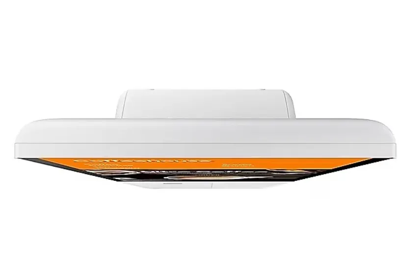 Samsung Kiosk jest zbudowany z pojedynczym wyświetlaczem i skrzynką połączeniową, a także opcjonalną podstawą. Konstrukcja pozwala na przejrzyste i wygodne zarządzanie, a szaro-biały kolor i prosta podstawka sprawiają, że Kiosk idealnie wpasuje się w każde wnętrze sklepu o stylowym wyglądzie.