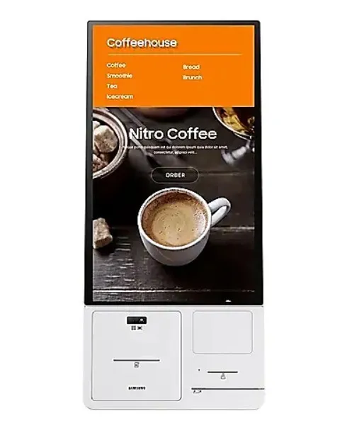 Samsung Kiosk ma modułową konstrukcję z wbudowaną drukarką i zapewnia dostęp do różnych opcji płatności w tym karty kredytowej, kodu kreskowego, kodu QR i NFC. Dlatego nie jest potrzebny żaden dodatkowy sprzęt zewnętrzny, aby uzyskać zaawansowane rozwiązanie typu "wszystko w jednym", co sprawia, że jest ono również szybkie i łatwe w utrzymaniu.