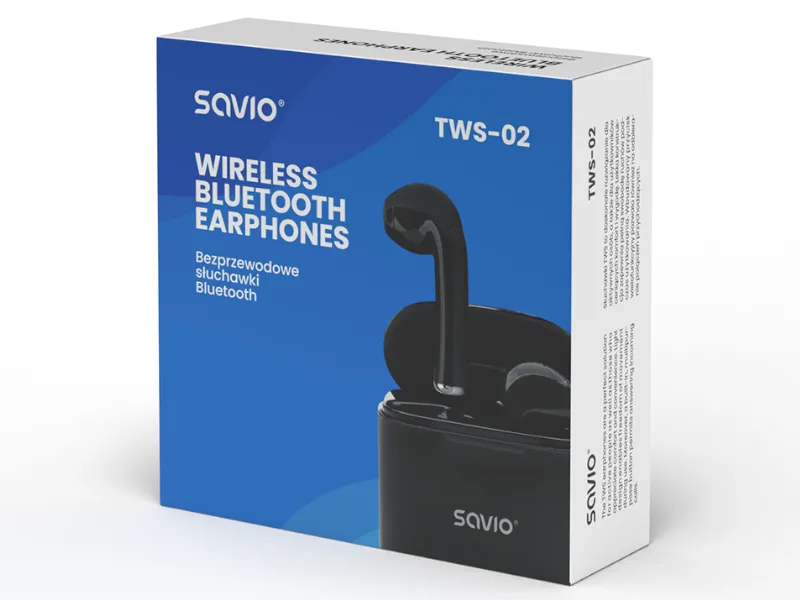 Słuchawki bezprzewodowe SAVIO TWS-02 Bluetooth 5.0 dioda LED