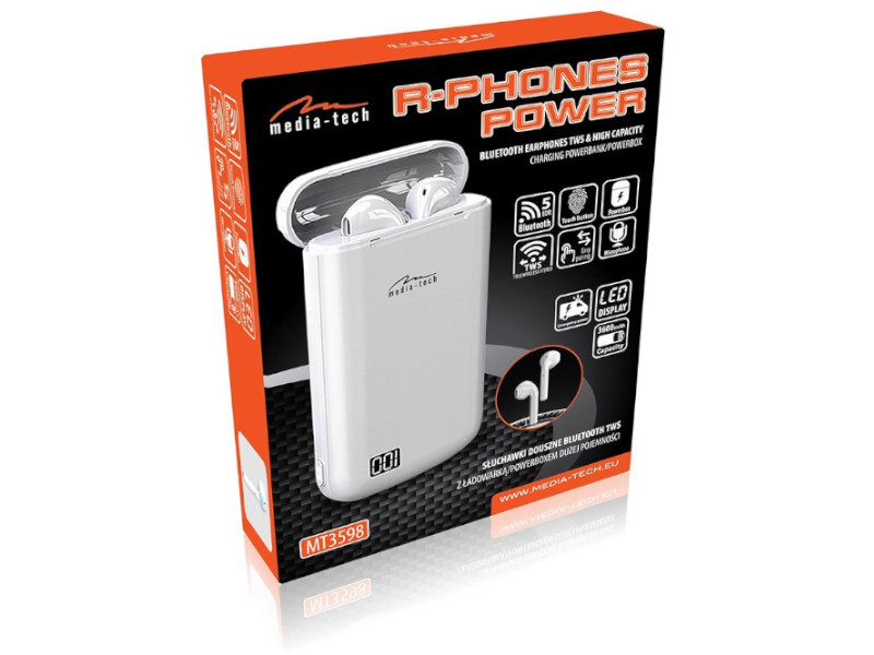 Słuchawki bezprzewodowe z Powerbankiem Media-Tech R-PHONES POWER MT3598 Białe