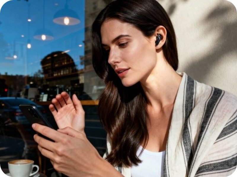 Za jakość brzmienia odpowiada przetwornik o średnicy 11 mm z membraną wykonaną z polimeru ciekłokrystalicznego LCP, który sprzyja precyzyjnej pracy i generowaniu głębokiego, kontrolowanego basu przy zachowaniu czystości całego pasma. Dodatkowo funkcja dźwięku przestrzennego 3D dynamicznie dopasowuje scenę dźwiękową do użytkownika, zwiększając realizm podczas oglądania filmów, grania w gry czy słuchania koncertów. Adaptacyjna aktywna redukcja hałasu ANC w czasie rzeczywistym analizuje dźwięki otoczenia i automatycznie dostosowuje poziom wyciszenia do warunków zewnętrznych. System dwóch mikrofonów monitorujących hałas otoczenia wspiera skuteczne ograniczanie zakłóceń, dzięki czemu muzyka i treści audio pozostają wyraźne nawet w głośnym środowisku, takim jak ulica czy komunikacja miejska. Cztery mikrofony z algorytmami redukcji szumów dbają również o klarowność rozmów głosowych, poprawiając jakość połączeń telefonicznych i spotkań online.