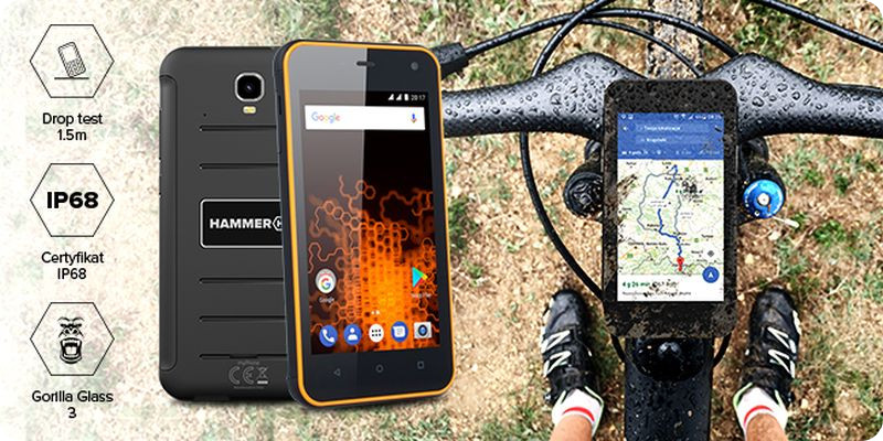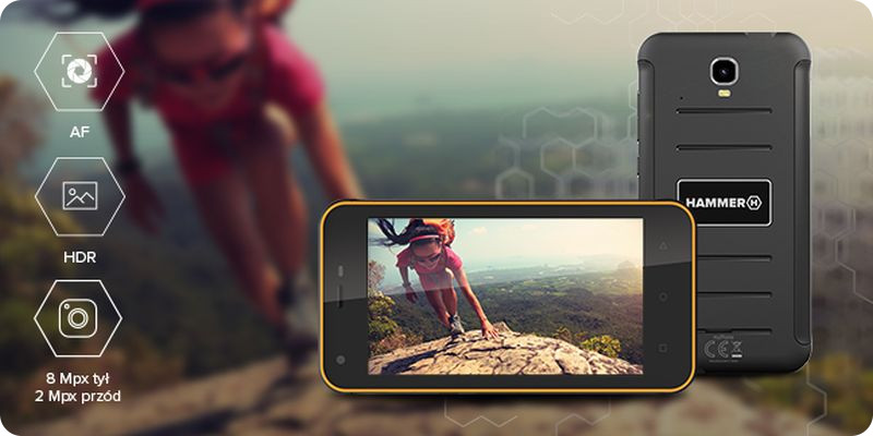 HAMMER Active to 4.7-calowy smartfon ze wzmocnioną konstrukcją, a jednocześnie najbardziej smukły i najlżejszy z HAMMERÓW. Stworzony z myślą o aktywnych osobach, dla których ważne są: wytrzymałość, poręczność i oryginalny design. Zła pogoda, deszcz czy błoto to teraz żadne wymówki. Telefon posiada certyfikat IP 68 więc jest odporny na Twój pot i łzy. Niech warstwa pyłu na telefonie wyznacz kolejne przebyte kilometry.