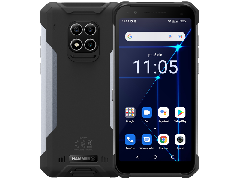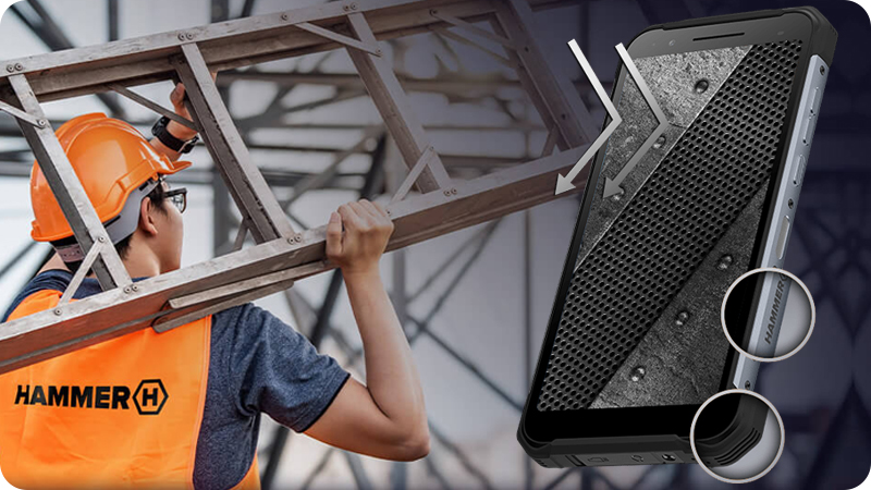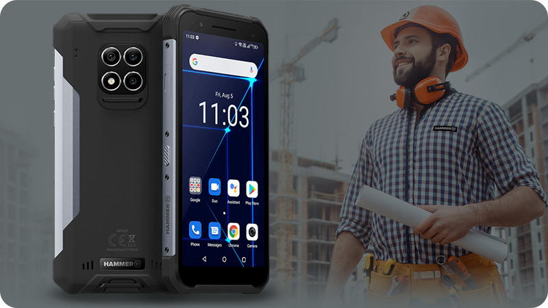 Smartfon Hammer Construction został stworzony z myślą o osobach, które potrzebują odpornego narzędzia wspierającego pracę. Wyróżniającego go cechy to 6-calowy wyświetlacz oraz wzmocniona obudowa. Do tego 6 GB pamięci RAM oraz 128 GB pamięci wbudowanej sprawia, że urządzenie jest niezwykle wydajne. Urządzenie jest odporne na wstrząsy, a także wodę i kurz, co zostało potwierdzone certyfikatami IP69 oraz militarnym MIL-STD-810G. Model ten wyróżnia się również zastosowaniem eSIM oraz baterią o pojemności 6000 mAh z szybkim ładowaniem 18W. A do tego, aby smartfon sprostał potrzebom majsterkowiczów, został wyposażony również w dalmierz laserowy, który umożliwia dokonanie pomiarów odległości oraz powierzchni.