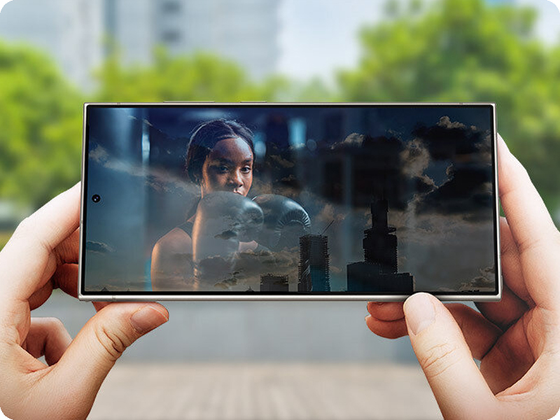 Samsung Galaxy S24 Ultra 5G wyposażono w wyświetlacz o przekątnej 6.8” oraz rodzielczości 3120 x 1440 px, który pozwoli Ci zobaczyć jeszcze więcej. Wysoka częstotliwość odświeżania 120 Hz zapewnia rewelacyjną jakość i płynność obrazu. Dzięki takiemu połączeniu, grafika wyświetla się płynnie, a wzrok męczy się mniej. Ponadto wysoka jasnoć wyświetlacza sięgająca do 2600 nitów, ułatwia korzystanie z urządzenia nawet w ostrym słońcu. Urządzenie automatycznie przystosowuje się do różnych warunków oświetleniowych. Połączenie nowoczesnych zastosowań, potężnego odświeżania i najwyższej klasy komponentów sprawi, że smartfon Samsung zrobi na każdym użytkowniku niezapomniane wrażenie.