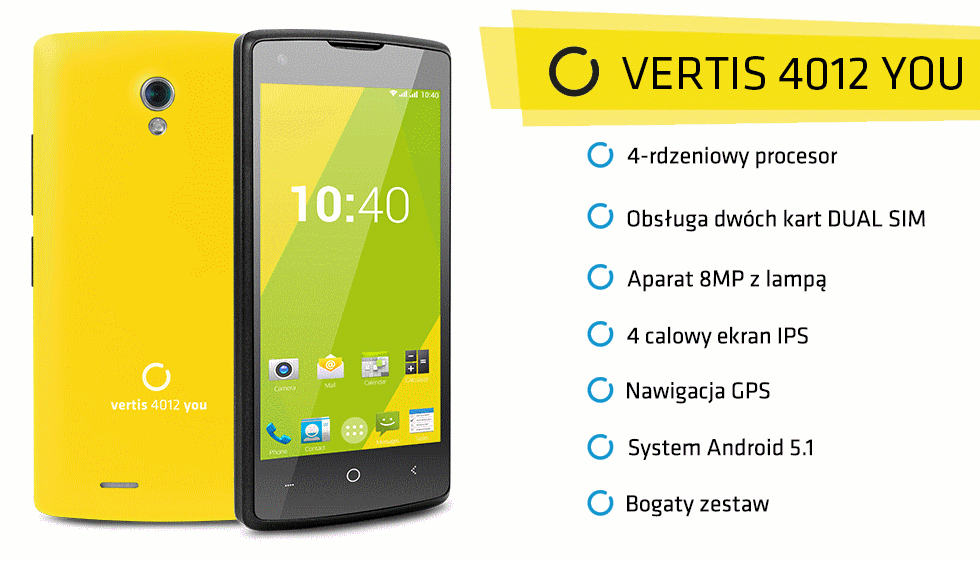 Vertis 4012 You to nowoczesny smartofn, to już kolejny model z serii YOU, który swoje płynne działanie zawdzięcza sprawdzonym rozwiązaniom. Nowy system Android, parametry na wysokim poziomie, nowoczesny design, najlepsze wykonanie i bogaty zestaw. Sprawdź jak wiele oferuje nowy smartfon z serii OVERMAX VERTIS YOU.