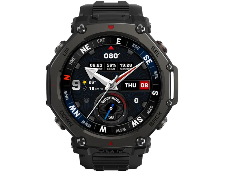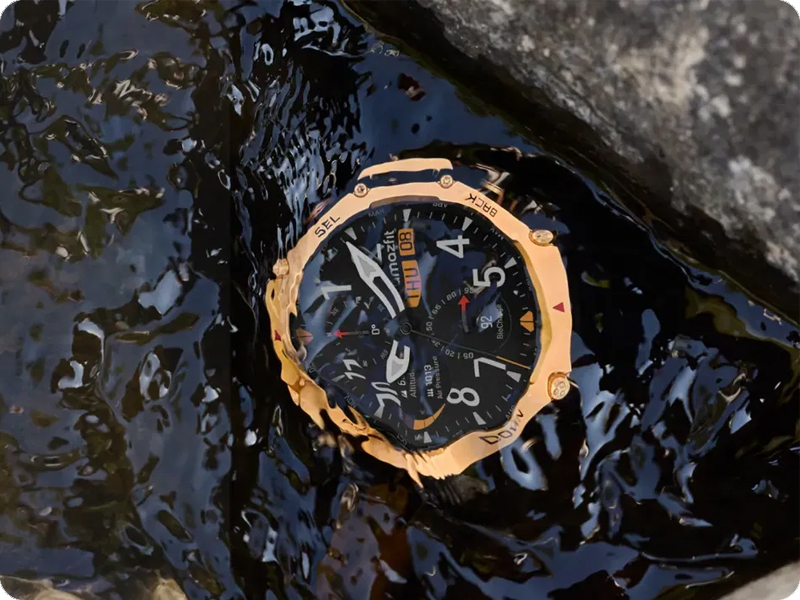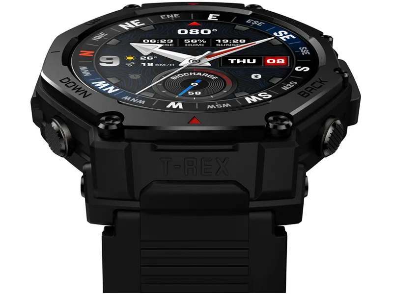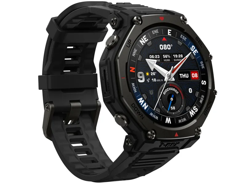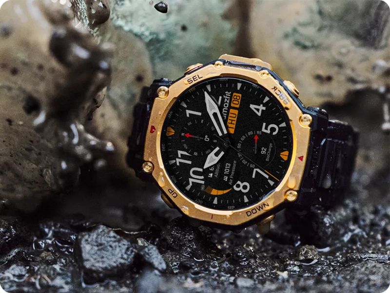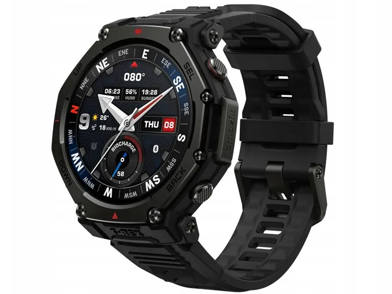 Amazfit T-Rex 3 Pro został zaprojektowany tak, by stawić czoła najtrudniejszym warunkom – obudowa łącząca polimer wzmocniony włóknem z elementami stopu tytanowego klasy 5 oraz szkłem szafirowym zapewnia wyjątkową odporność na zarysowania i wstrząsy. Ekran wykonany w technologii AMOLED oferuje znakomitą czytelność nawet przy jasnym świetle słonecznym, dzięki szczytowej jasności sięgającej 3 000 nitów. Cała konstrukcja została zaprojektowana z myślą o codziennej wygodzie i wytrzymałości podczas ekstremalnych przygód.