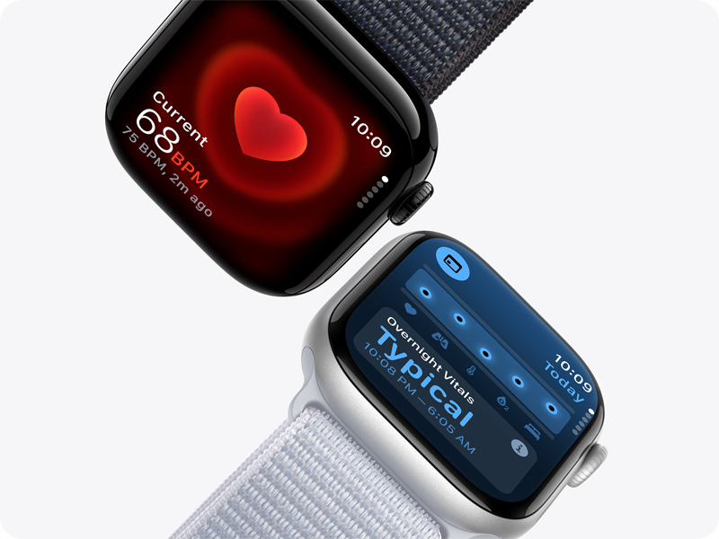Apple Watch Series 10 oferuje szeroką gamę funkcji monitorujących zdrowie i aktywność fizyczną. Wyposażony jest w czujnik pracy serca wykorzystujący impulsy elektryczne, optyczny czujnik tętna trzeciej generacji, czujnik natlenienia krwi oraz czujnik temperatury. Smartwatch wyposażony jest także w dodatkowe funkcje jak aplikacje EKG, Śledzenie cyklu z szacowaniem czasu owulacji, Tlen we krwi, Tętno oraz powiadomienia o zbyt wysokim lub niskim tętnie i arytmii. Zegarek umożliwia również monitorowanie snu, w tym faz snu i powiadomienia o bezdechu sennym.