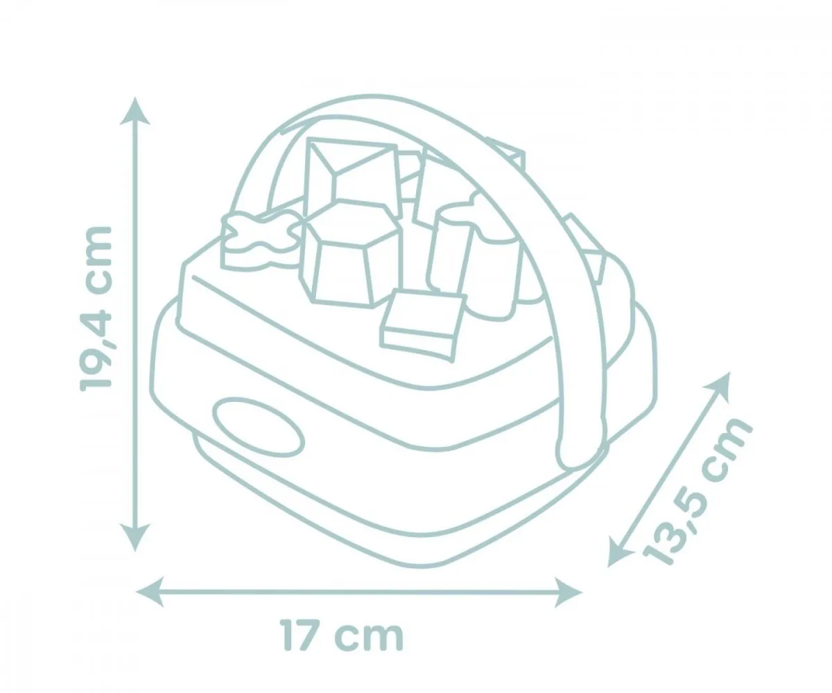 - Sorter kształtów Little Smoby składający się z 8 elementów (kwadrat, trójkąt, sześciokąt itd.), które można dopasowywać lub układać w stos.