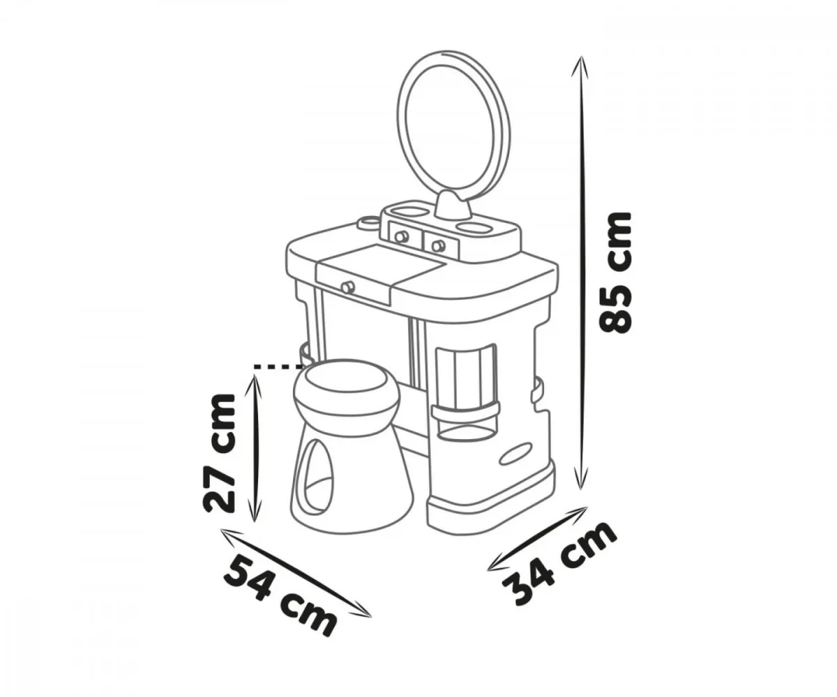 - Konstrukcja toaletki została wykonana metodą formowania wydmuchowego, co zapewnia jej sztywność i trwałość na długi czas.