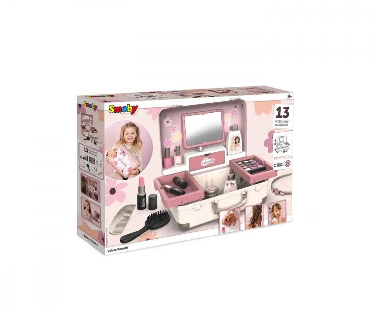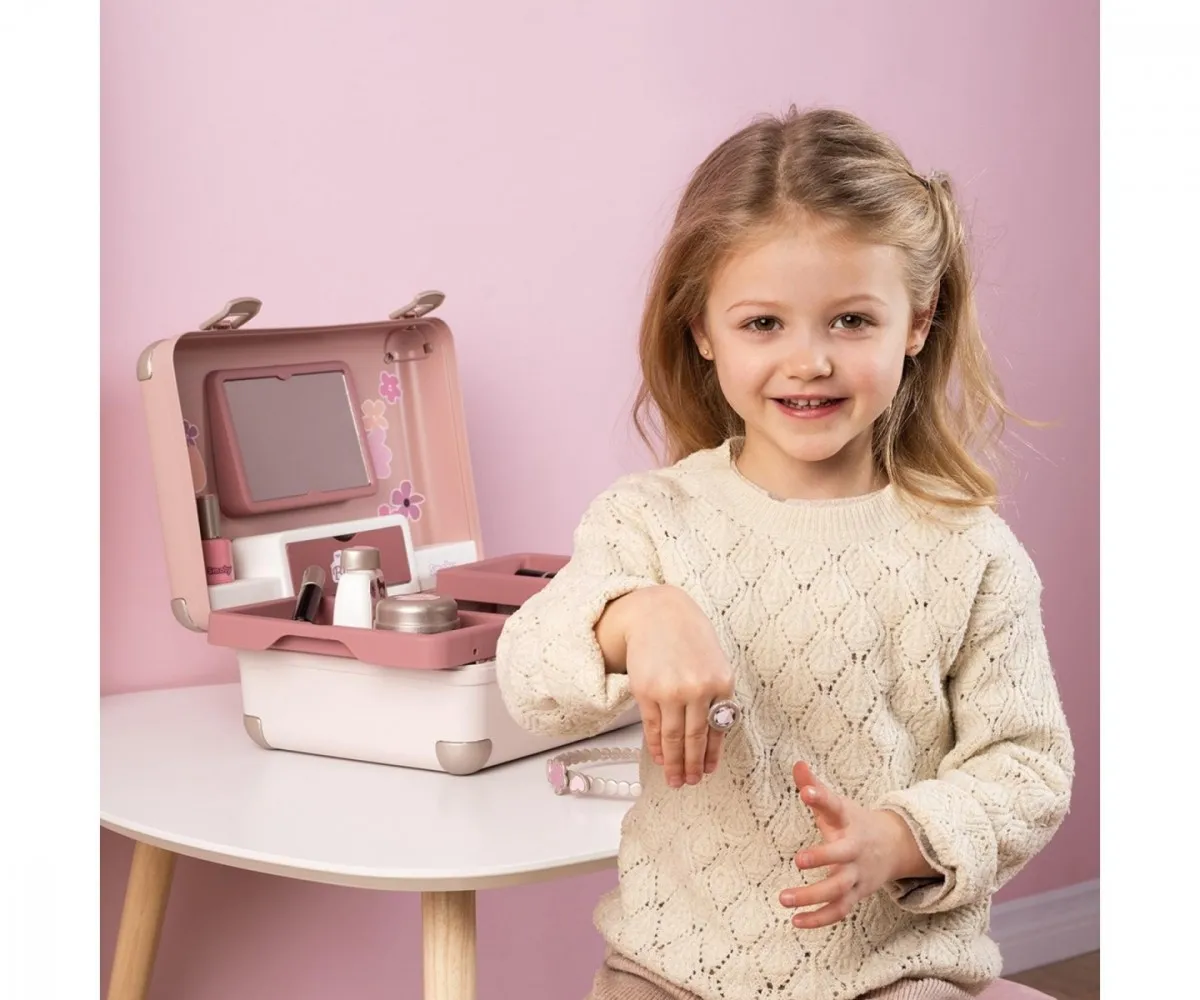 - 13 akcesoriów - imitacji dołączonych do zestawu to wierne repliki, które gwarantują godziny zabawy: 2 lakiery do paznokci, 2 szminki, paletka cieni, tusz do rzęs, szczotka, grzebień, opaska, pierścionek oraz różne buteleczki.