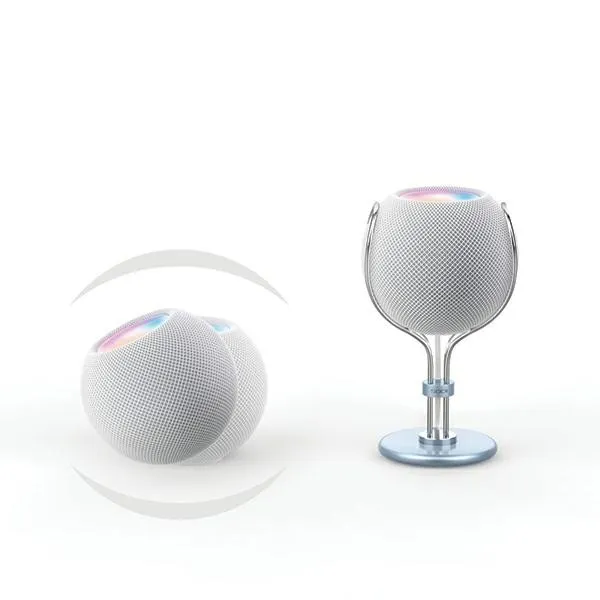 - Budowa stojaka na głośnik idealnie dopasowuje się do głośnika Homepod Mini, dając łatwy dostęp do jego obsługi.