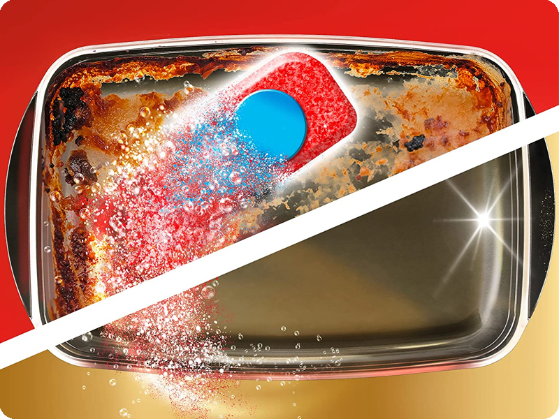 Tabletki czyszczące Somat Gold usuwają nawet najcięższe przypalenie i pozostałości posiłku, sprawiając, że naczynia za każdym razem są idealnie czyste i lśniące. Formuła Somat Gold szybko się rozpuszcza i działa natychmiastowo, nawet w krótkich cyklach oraz niskich temperaturach, dzięki czemu szybko usuwa pozostałości jedzenia, takie jak tłuszcz oraz przypalone lub wysuszone potrawy, oraz plamy z herbaty i kawy. Możesz ich bezpiecznie używać do wszystkich naczyń przeznaczonych do zmywarki: talerzy, szklanek, kubków, butelek, sztućców, garnków i patelni. Dzięki specjalnym technologiom Somat Gold, zapobiegającym zaciekom i nieprzyjemnym zapachom, Twoje naczynia będą lśniące i wyjątkowo pachnące po każdym cyklu zmywania.