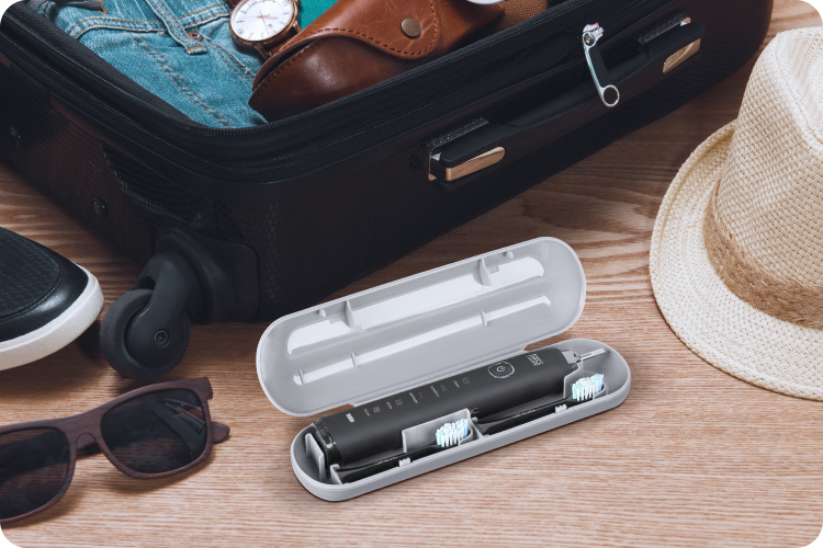 Nie zabierasz w podróż szczoteczki sonicznej, bo boisz się, że urządzenie uszkodzi się w walizce? Teraz to nie jest problem! Wraz ze szczoteczką SONIC Black otrzymujesz podróżne etui, dzięki któremu będziesz mógł zabierać szczoteczkę zawsze ze sobą i dbać o swój uśmiech tam, gdzie chcesz.