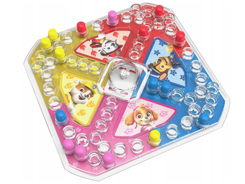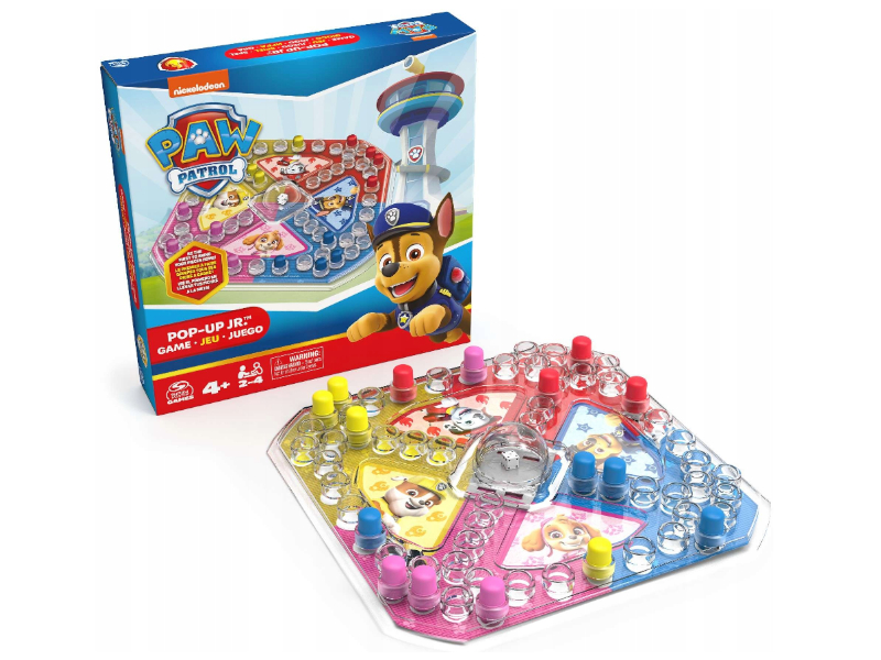 Gra pochodzi z serii zabawek Psi Patrol, powstałej na podstawie animowanego serialu dla dzieci o tym samym tytule. Zestaw do gry składa się z kolorowej, plastikowej planszy, która podzielona jest na cztery strefy. Plansze zdobi grafika przedstawiająca bohaterów bajki, a kolory stref są charakterystyczne dla piesków - Rubble (żółty), Chase (niebieski), Marshall (czerwony) oraz Skye (różowy). Dodatkowo planszę wyposażono w plastikowe trasy z zagłębieniami dla pionków, a w jej centralnym punkcie znajduje się kostka do gry pod przezroczystą kopułą systemu Pop Up. Dzięki temu rozwiązaniu kostką nie rzuca się, a naciska na kopułkę, co powoduje podskoczenie kostki zamkniętej pod nią.