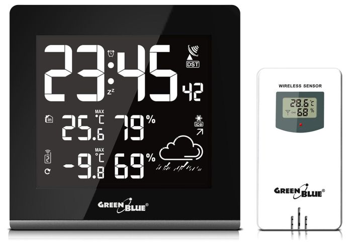 Nowoczesna stacja pogody z dużym, czytelnym wyświetlaczem. Niezawodna, elegancka i prosta w obsłudze. Bezprzewodowy czujnik temperatury zewnętrznej o zasięgu do 60 m. Czujnik wyposażony w ekran ciekłokrystaliczny, na którym są wyświetlane temperatura i wilgotność. Wysoka jakość gwarantowana przez renomowanego producenta. Radiowa kontrola czasu DCF.
