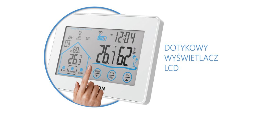 Stacja pogodowa ma łatwy w obsłudze, intuicyjny i duży dotykowy wyświetlacz z obrazem wysokiej jakości. Obudowa urządzenia dostosowana jest w taki sposób, aby mogła stać na blacie, bądź wisieć na ścianie.
