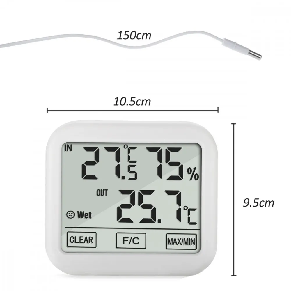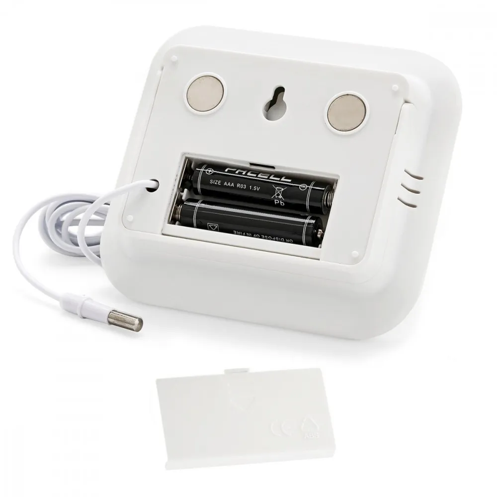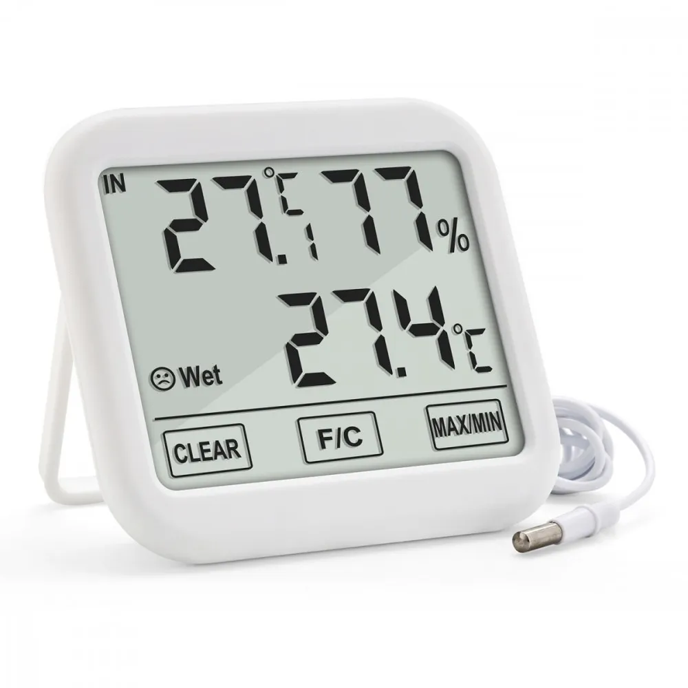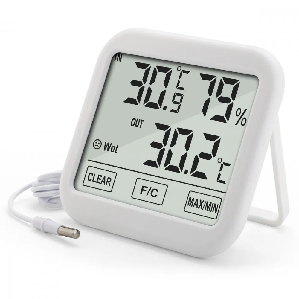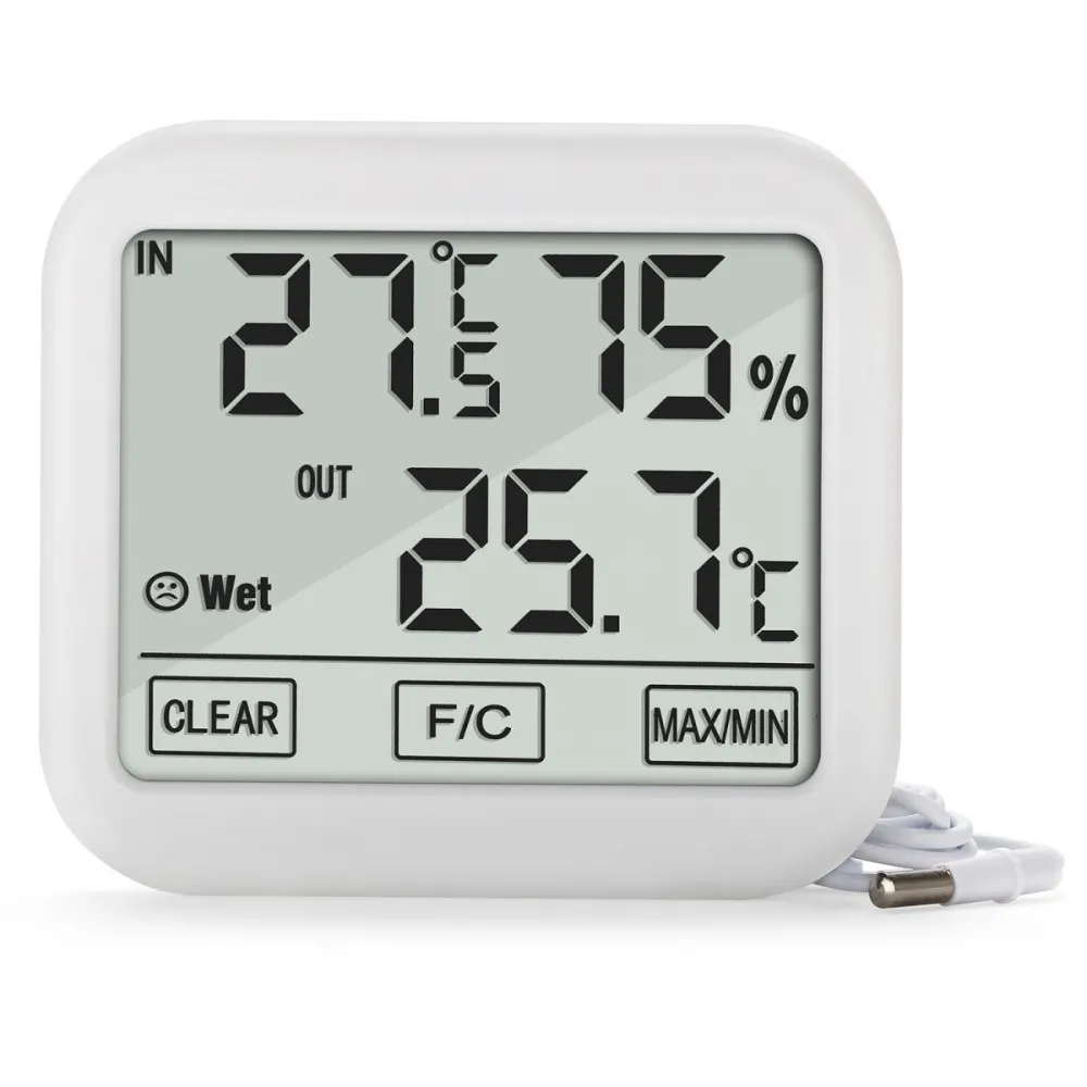 Wysokiej jakości urządzenie służące do kontroli temperatury wewnętrznej i zewnętrznej oraz wilgotności wewnątrz pomieszczeń. Duży, czytelny ekran wyświetla jednocześnie temperatury, wilgotność oraz poziom komfortu.
