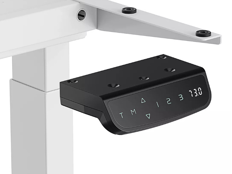 Oba silniki zostały wbudowane w kolumny, przez co pracują niezwykle cicho, a miękkie, gumowe podkładki pod blat doskonale tłumią wszelkie drgania podczas zmiany wysokości i zapewniają znakomitą kulturę pracy całego mebla, nawet pod dużym obciążeniem. Co więcej Kontroler z funkcją wyświetlania aktualnej wysokości i zapisu trzech ulubionych konfiguracji jest wygodny i wszechstronny zarówno w biurze, jak i w domowym stanowisku do rozrywki. Wyposażony w gniazdo USB pozwoli ci naładować swoje urządzenie lub podłączyć oświetlenie bez zajmowania portu w komputerze.