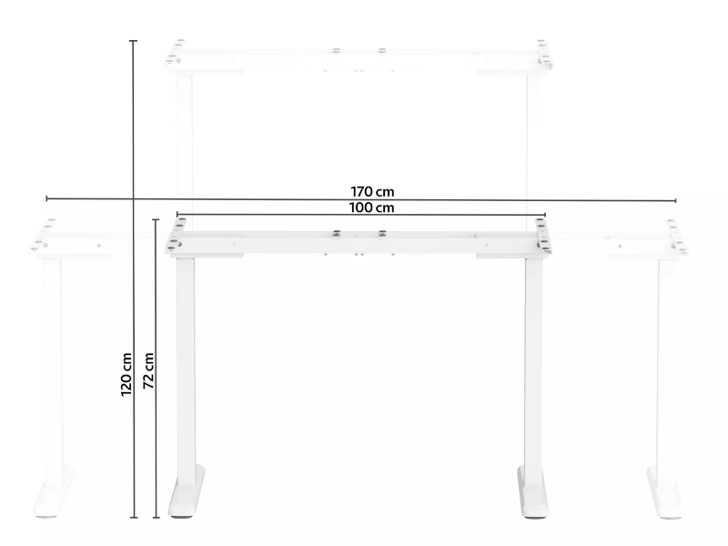 Sugerowana długość blatu: 60-80 cm Kontroler z ładowarką USB 10W Prędkość regulacji: 2,5 cm/s Sugerowana szerokość blatu: 110-200 cm Zakres regulacji szerokości: 100-170 cm |