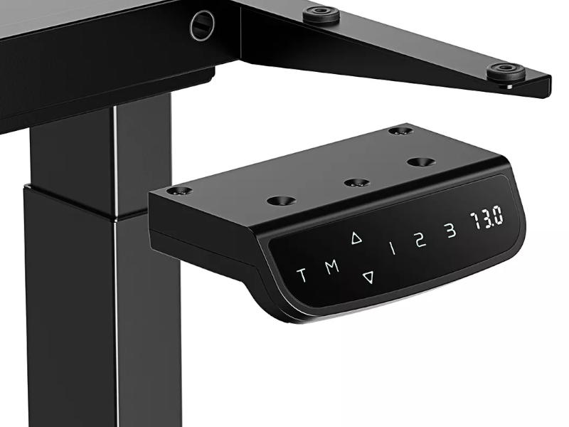Oba silniki zostały wbudowane w kolumny, przez co pracują niezwykle cicho, a miękkie, gumowe podkładki pod blat doskonale tłumią wszelkie drgania podczas zmiany wysokości i zapewniają znakomitą kulturę pracy całego mebla, nawet pod dużym obciążeniem. Co więcej Kontroler z funkcją wyświetlania aktualnej wysokości i zapisu trzech ulubionych konfiguracji jest wygodny i wszechstronny zarówno w biurze, jak i w domowym stanowisku do rozrywki. Wyposażony w gniazdo USB pozwoli ci naładować swoje urządzenie lub podłączyć oświetlenie bez zajmowania portu w komputerze.