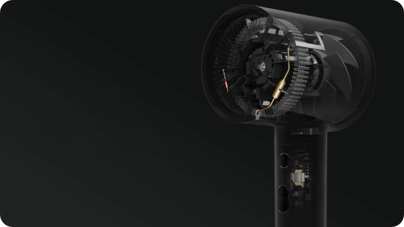 Inteligentny układ monitoruje temperaturę powietrza 60 razy na sekundę i dynamicznie ją dostosowuje, zapewniając utrzymanie jej na poziomie 57°C. To rozwiązanie pomaga zapobiegać uszkodzeniom włosów podczas suszenia i zachować ich zdrowy połysk. Aby dbać o bezpieczną pracę, suszarka wyłącza się w przypadku generowania zbyt wysokich temperatur, a w skrajnych przypadkach zadziała bezpiecznik.