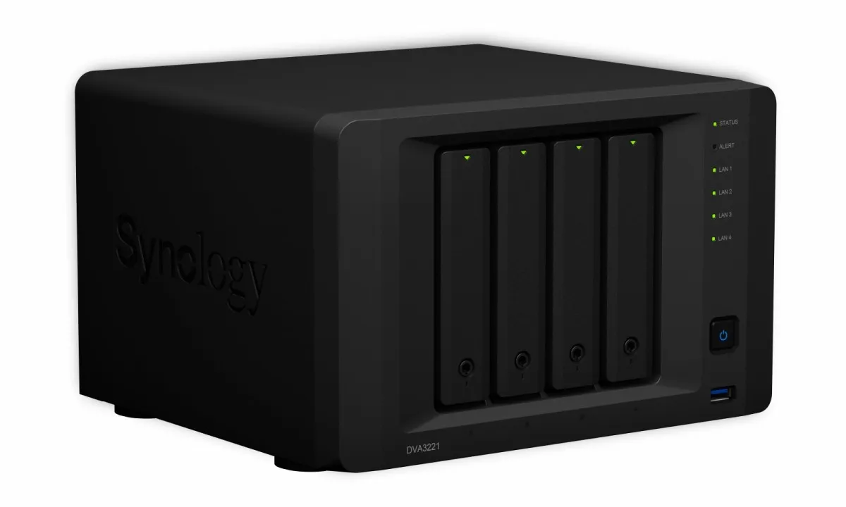 Synology NVR DVA3221 to lokalne, 4-kieszeniowe urządzenie NVR w obudowie wielkości komputera stacjonarnego, integrujące zaawansowane algorytmy firmy Synology oparte na głębokim uczeniu, co zapewnia szybkie, inteligentne i dokładne rozwiązanie do wideomonitoringu. Wbudowana obsługa powiadomień push informuje użytkowników o możliwych włamaniach, a zautomatyzowany system wideomonitoringu pomaga chronić obiekty dzięki wykrywaniu osób, pojazdów i anonimowych obiektów w wyznaczonych obszarach.