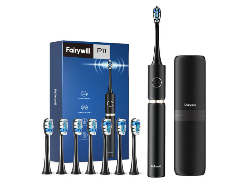 Szczoteczka soniczna do zębów z zestawem końcówek i etui FairyWill FW-P11 (Czarna)