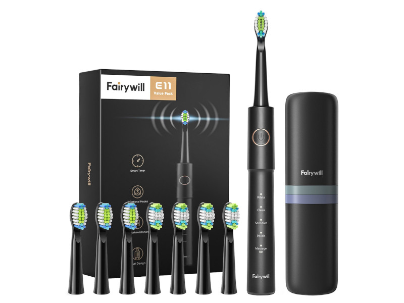 Szczoteczka soniczna z zestawem końcówek i etui FairyWill FW-E11 Czarna