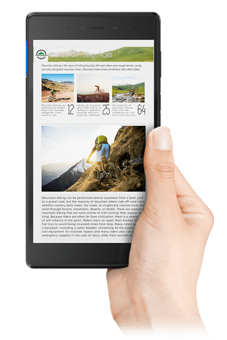 Nareszcie świetny tablet, który nie rozsadzi domowego budżetu. Tab 7 Essential nadaje się idealnie do użytku przez całą rodzinę dzięki kontom dla różnych osób, za pomocą których rodzice mogą dobrać funkcje dla siebie i dzieci. Jest też płaski i lekki, dzięki czemu może się nim wygodnie posługiwać każdy członek rodziny.