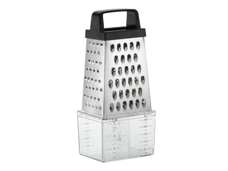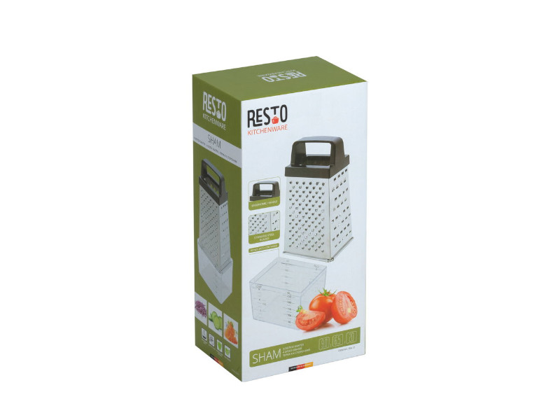Tarka kuchenna od Resto pozwala na proste i wygodne szatkowanie. Budowa innych tarek na rynku nie jest tak przemyślana, jak budowa produktu od Resto. Przemyślana konstrukcja sprawi, że nie będziesz musiał martwić się o skaleczenia i inne rany spowodowane kiepską stabilnością produktu. Kompaktowe rozmiary oprócz wydajnej pracy pozwalają na schowanie tarki w dowolne miejsce. Producenci zadbali, aby użykownik nie został na lodzie i wyposażyli tarkę w różnego rodzaju ostrza, które poradzą sobie z różnymi zadaniami. Miękki i ergonomiczny uchwyt wraz z gumową antypoślizgową podstawką odpowiedzialny jest za stabilność i wygodę. Sprzęt jest również niezwykle łatwy w obsłudze i myciu. W zestawie znajdziemy również pojemnik na starte warzywa, który możemy mocować pod tarką.