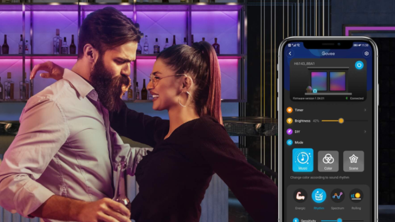 Dzięki teśmie LED Govee H6143 w prosty sposób dodasz żywe kolory do swojej kuchni, salonu lub innego pomieszczenia. Ta taśma LED została stworzona w taki sposób, aby w sposób dynamiczny i przede wszystkim wyjąkowy oświrtlać Twoje pomieszczenie. Zaakcentuj swój pokój nastrojowym oświetleniem, anby stworzyć idealną atmosferę do oglądania filmu lub po prostu usiądź i się zrelaksuj.
