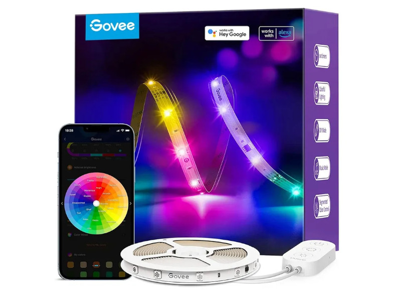 Taśma LED o długości 10 m wprowadza gamingowy kilmat do całego pomieszczenia. Taśma od Govee jest kompatybilna z wszelkiego rodzaju asystentami głosowymi. Dodatkowo technologia RGBIC, w jaką wyposażona jest taśma, jest wyróżniającą cechą taśmy LED Govee H618C3D1. Z kolei za sprawą aplikacji Govee Home możesz wybierać spośród gotowych efektów, które stworzą niezapomniany klimat w twoim pomieszczeniu.