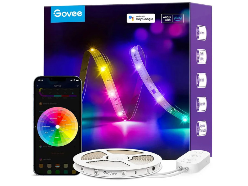 Taśma LED o długości 5 m wprowadza gamingowy kilmat do całego pomieszczenia. Taśma od Govee jest kompatybilna z wszelkiego rodzaju asystentami głosowymi. Dodatkowo technologia RGBIC, w jaką wyposażona jest taśma, jest wyróżniającą cechą taśmy LED Govee H618A3D1. Z kolei za sprawą aplikacji Govee Home możesz wybierać spośród gotowych efektów, które stworzą niezapomniany klimat w twoim pomieszczeniu. Sprzet dysponuje również, aż 11 trybami muzycznymi, dzięki którym światła dopasują się do odtwarzanego rodzaju muzyki. 16 milionów żywych kolorów zapewnia niezrównany poziom personalizacji twojego urządzenia. Nadaj swojemu wnętrzu lub stanowisku niezapomniany klimat.