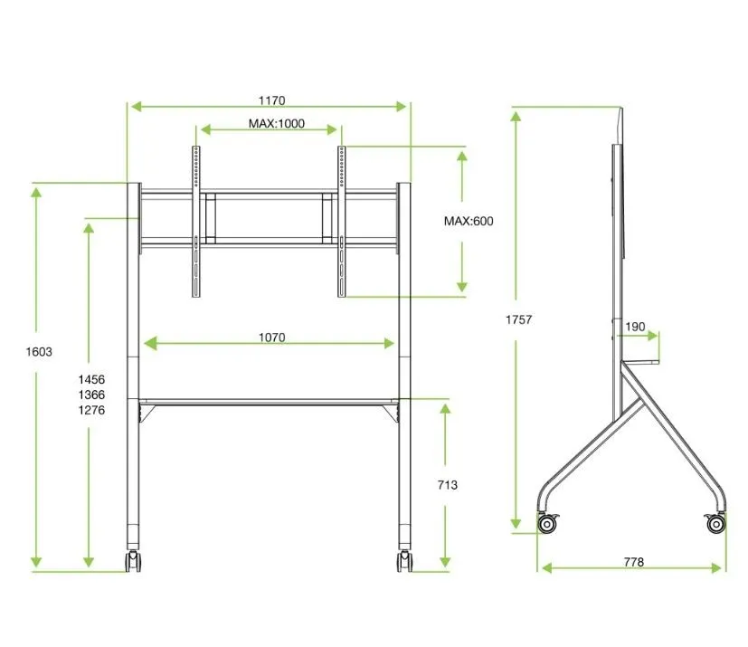 Specjalnie zaprojektowany do telewizorów z dużym ekranem, ICA-TR53LB spełnia potrzeby mobilności i przechowywania akcesoriów. Blokowane koła zapewniają jednocześnie mobilność i stabilność. Można go łatwo przesuwać w dowolne miejsce do wideokonferencji, gier i nie tylko.