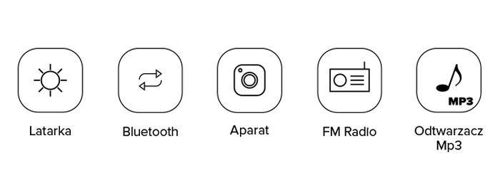 Latarka LED która świeci dłużej i zużywa mniej energii niż zwykła żarówka, pomaga odczytać rozkład jazdy autobusów lub znaleźć zagubiony przedmiot po zmroku. Podłącz zestaw głośnomówiący lub słuchawkowy dzięki modułowi Bluetooth. Zapamiętaj ważne elementy z życia jednym naciśnięciem guzika. Rób zdjęcia i foto notatki. Słuchaj mp3 oraz ulubionej audycji radiowej gdziekolwiek jesteś, dzięki radiu i odtwarzaczowi mp3.