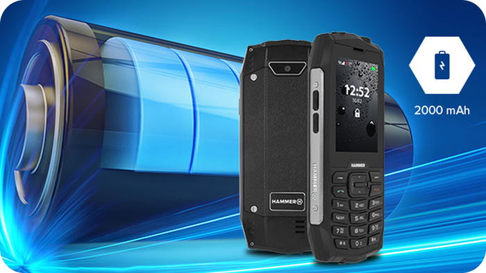 Stan czuwania do 24 dni albo do 20 godzin ciągłych rozmów - brzmi dobrze, prawda? HAMMER 4 został wyposażony w wymienną baterię o pojemności 2000 mAh.