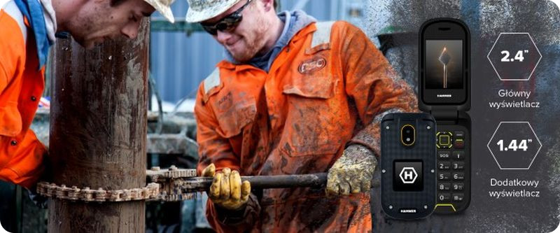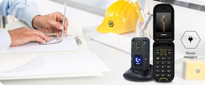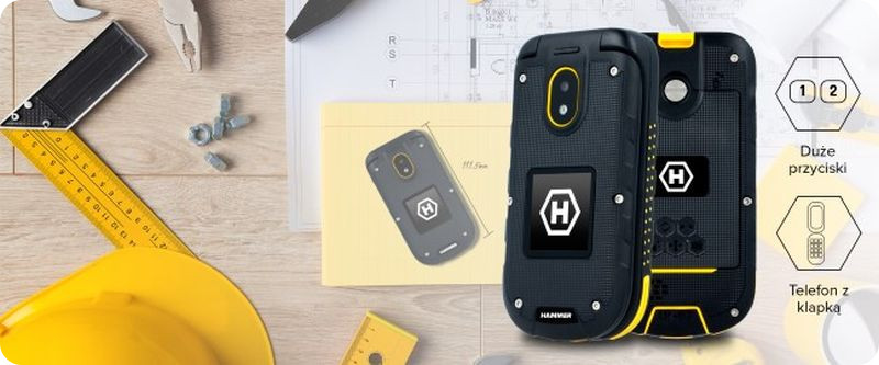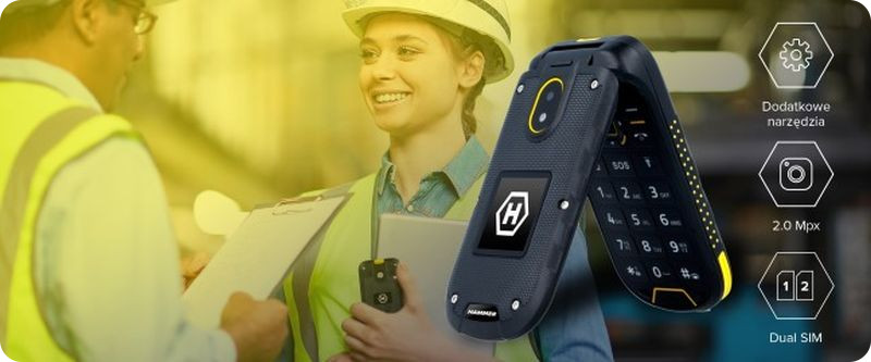 HAMMER BOW+ to niezwykle poręczny i kompaktowy telefon. Dzięki niewielkim rozmiarom 111.5 x 57,2x21 mm i wadze z łatwością zmieści się do kieszeni. Duże klawisze oraz odbieranie rozmów poprzez otwarcie telefonu sprawiają, że telefon jest niezwykle wygodny w obsłudze - nawet w roboczych rękawicach.