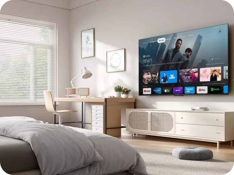 Za optymalizację obrazu odpowiada procesor TCL AiPQ, który wykorzystuje sztuczną inteligencję do poprawy jakości wyświetlanych treści. Funkcja AI Upscaling pozwala skalować materiały o niższej rozdzielczości do jakości zbliżonej do 4K, dzięki czemu nawet starsze filmy i programy prezentują się lepiej. Dodatkowo technologia Motion Clarity (MEMC) redukuje rozmycie ruchu, co jest szczególnie zauważalne podczas oglądania sportu i dynamicznych scen akcji.